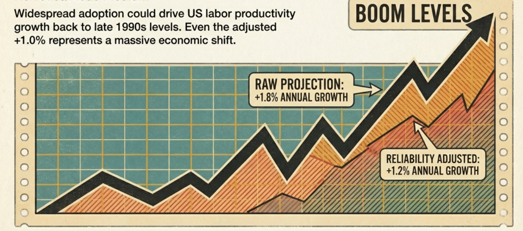 It’s a framework for trying to measure the intangibles, trying to put a number on thought. And their projection for productivity based on this is significant, they estimate that U.S. labor productivity growth could increase by 1.2 to 1.8 percentage points per year, and to put that in context for everyone, that would return us to the glory days of the late 1990s and early 2000s, the internet boom, that is a massive injection of wealth and capacity into the economy, that is the difference between a stagnant society and a truly booming one.