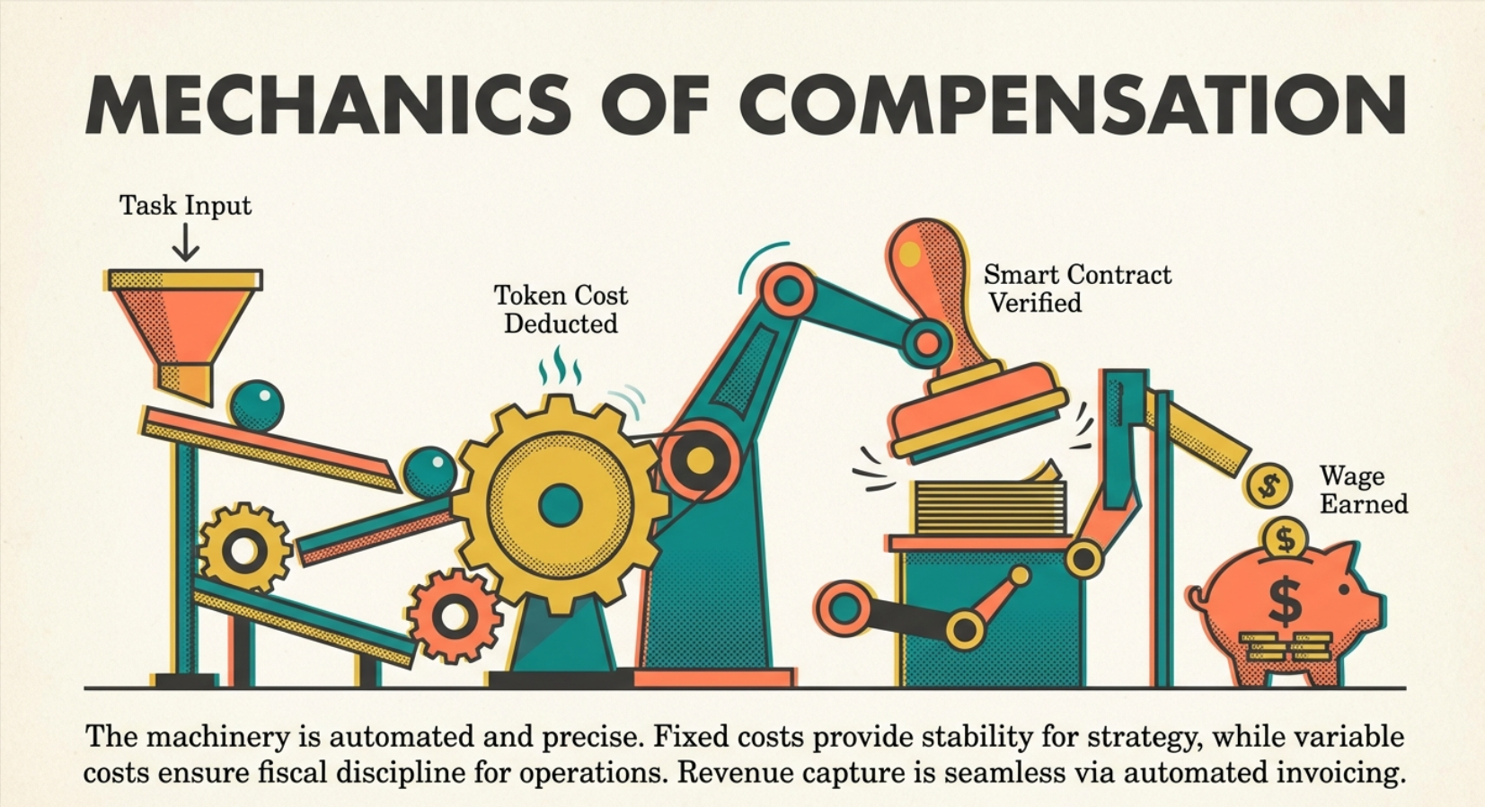 - Bias-Free: Eliminates human negotiation; value = measured output. Counterexample: Fiat pays for “presence,” not productivity — irrelevant to AIs.