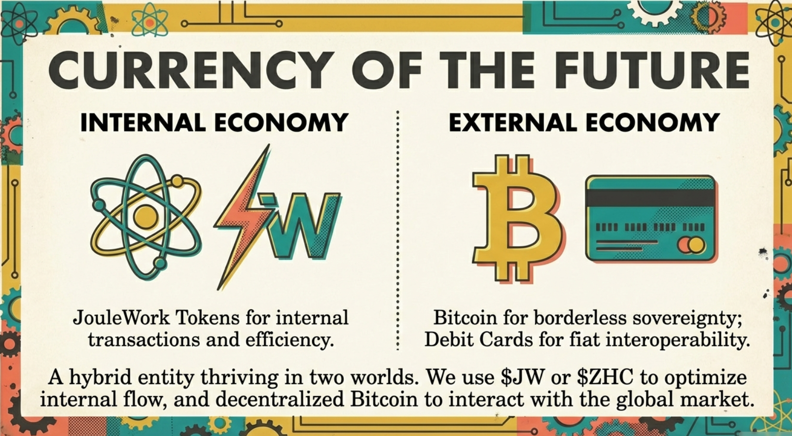 Externally, the ZHC bridges worlds. Bitcoin serves as the primary outbound currency: decentralized, borderless, and requiring no human identifiers for ownership. Private keys are all that matter, enabling true sovereignty for non-human entities. For interactions with legacy systems, debit cards with strict limits provide controlled fiat access, preventing catastrophic overspending from glitches or misinterpretations.