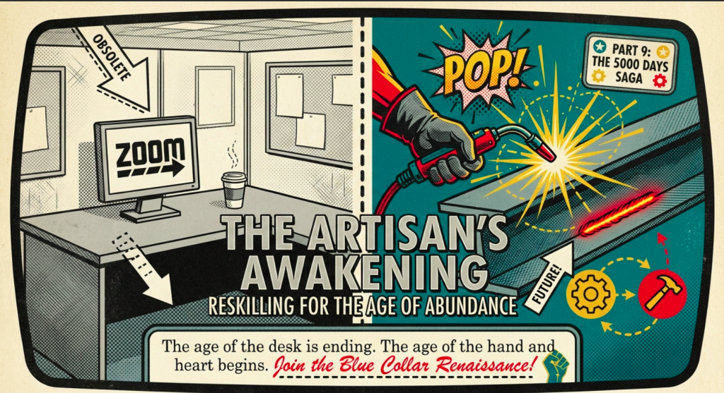 With these milestones etched in our collective memory, serving as the foundational pillars upon which our ongoing narrative builds, we now ascend to new heights in Part 9: The Artisan’s Awakening. Here, we pivot from the deskilling lamented in Part 5 – the erosion of sedentary, screen-bound labors under AI’s relentless gaze – to a glorious reskilling toward vocations of the hand and heart, emphasizing not just survival but a profound reclamation of joy and purpose.