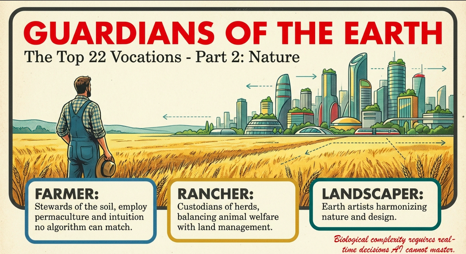 As in Part 7’s “Consider Phlebas,” contemplating legacy, these vocations etch your impact into the physical world, outlasting fleeting code, whether through a sturdy barn raised by your hands or fields rejuvenated under your care. They align with the Abundance Interregnum’s ethos: a buffer zone where you thrive, amassing skills that transcend economics, cultivating not just expertise but a profound appreciation for the interconnectedness of life and labor.