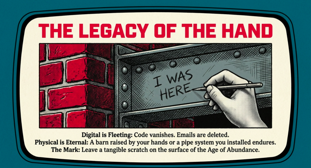 This Artisan’s Awakening is your invitation to embrace the full spectrum of human potential. In these 5000 days, reskill boldly, embrace the trades’ valor—including the grounding wisdom of farming and ranching—and prepare for hobbies that immortalize your spirit in ways that transcend time. The machines rise, but so do we – glorious, unyielding, eternal, our legacies woven into the fabric of a brighter world.