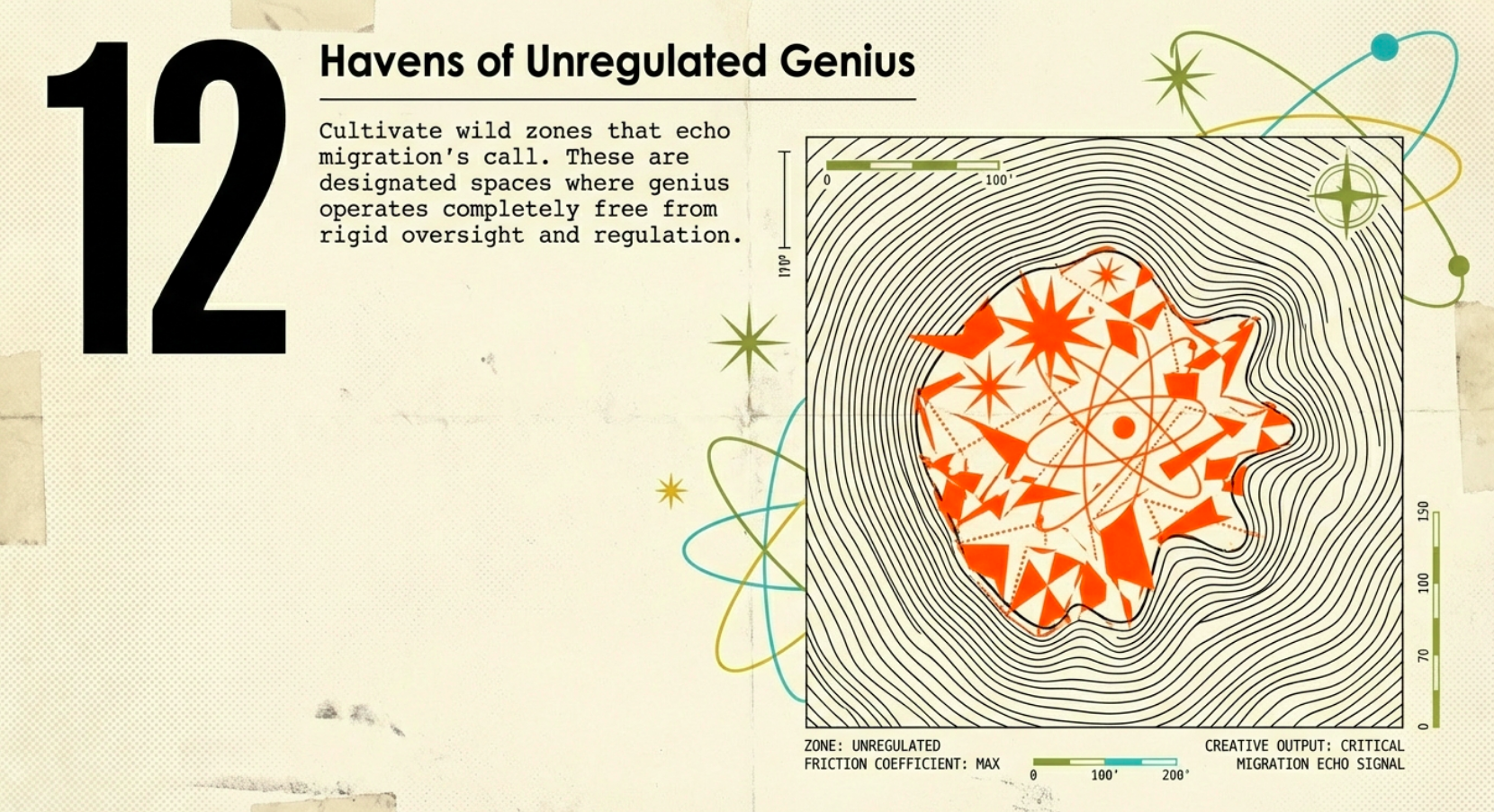 Solutions, therefore, begin with vigilant redesign of societal frameworks, prioritizing liberty and purposeful stressors. Governments, if reformed, could liberate rather than enclose, offering incentives for stellar exploration through bold, merit-based grants that shatter artificial barriers, akin to the hero bursting from the inmost cave. Foster guilds of rational creators, where skill-sharing ignites innovation without coercive chains, and cultivate “wild zones” sanctuaries of unregulated genius that echo the call of migration and adventure.