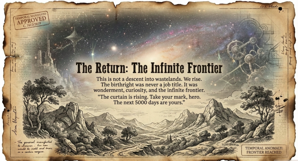 Yet it is profoundly anti-dystopian. Humanity does not descend into Elysium gated communities and unnecessary-eater wastelands. We rise. The same technologies that fracture the old system seed the new: decentralized, voluntary, abundant. The hero returns from the valley not with a magic sword but with the quiet, thunderous realization that your birthright was never a job title. It was wonderment, curiosity, love, intimacy, identity, and the infinite frontier.