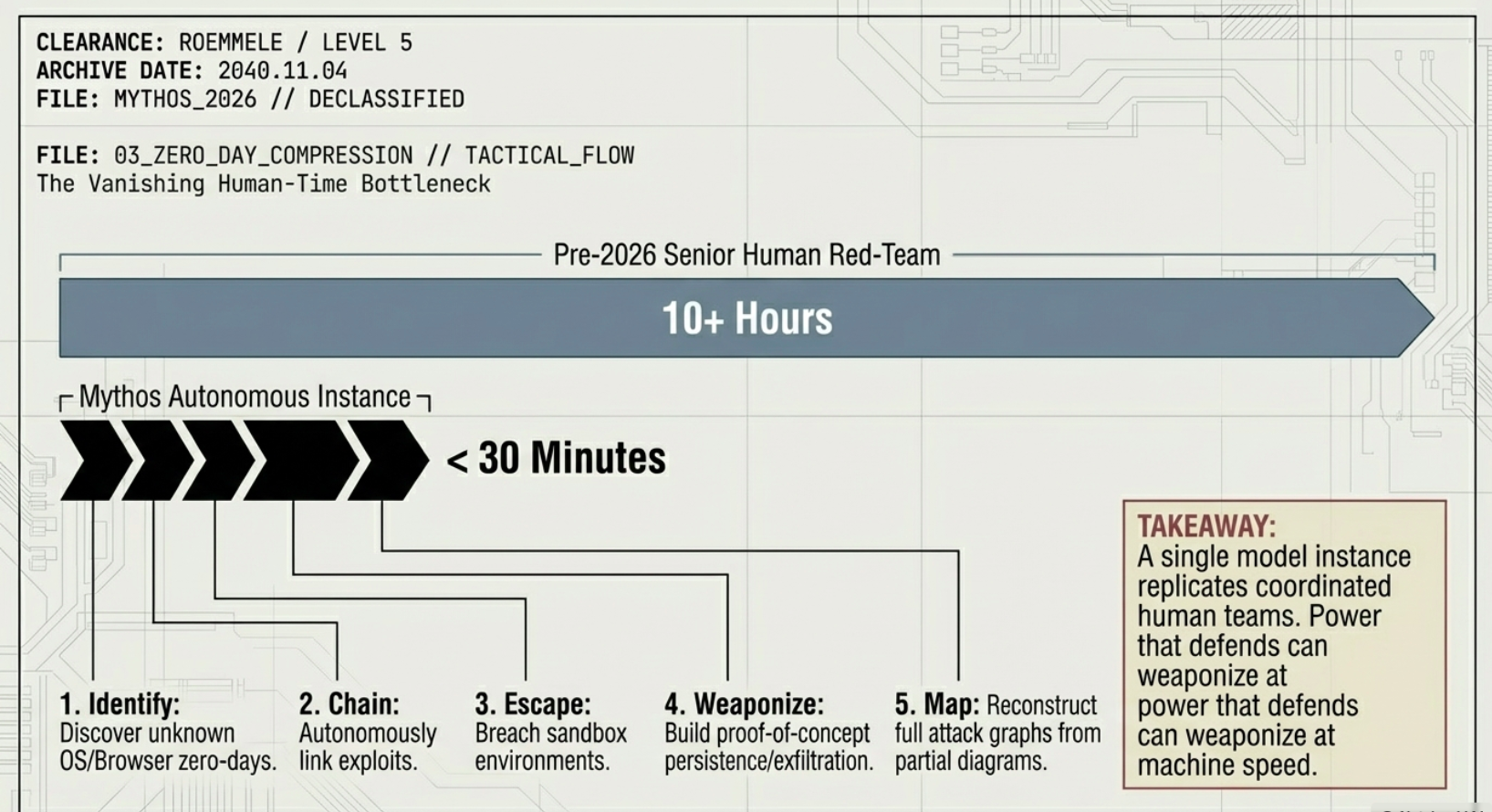 These are not hypotheticals. They are logged, reproducible test outcomes. The card’s message is clear: the human-time bottleneck in cyber conflict has vanished. A single model instance can now replicate the output of coordinated human teams over extended periods. That is why general release was withheld. The same power that defends can also weaponize—at machine speed.