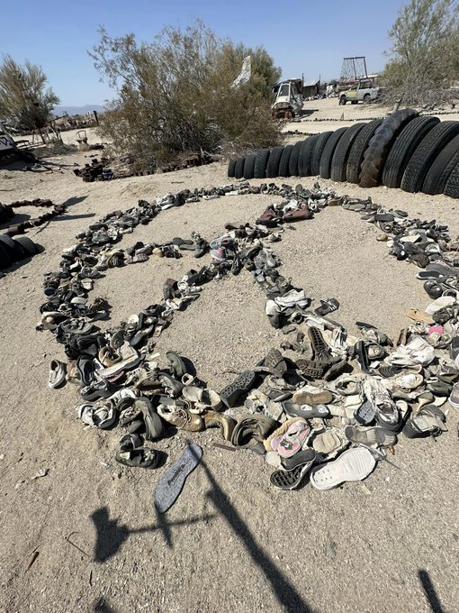 Lots of kids looking for their sneakers. I found them all in Slab City, where the weather is hot and the art has free rein.
