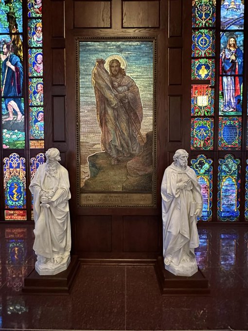 Know what was interesting about this place? They were very specific in the order to view the windows. The building was shaped as a cross. This was the long hall. When standing at the entrance of it they wanted you to go up the right side of the hall first and follow the walls that way till you come back down on the left wall. Even though they went through the life of Christ they had child Jesus’ on both walls.
