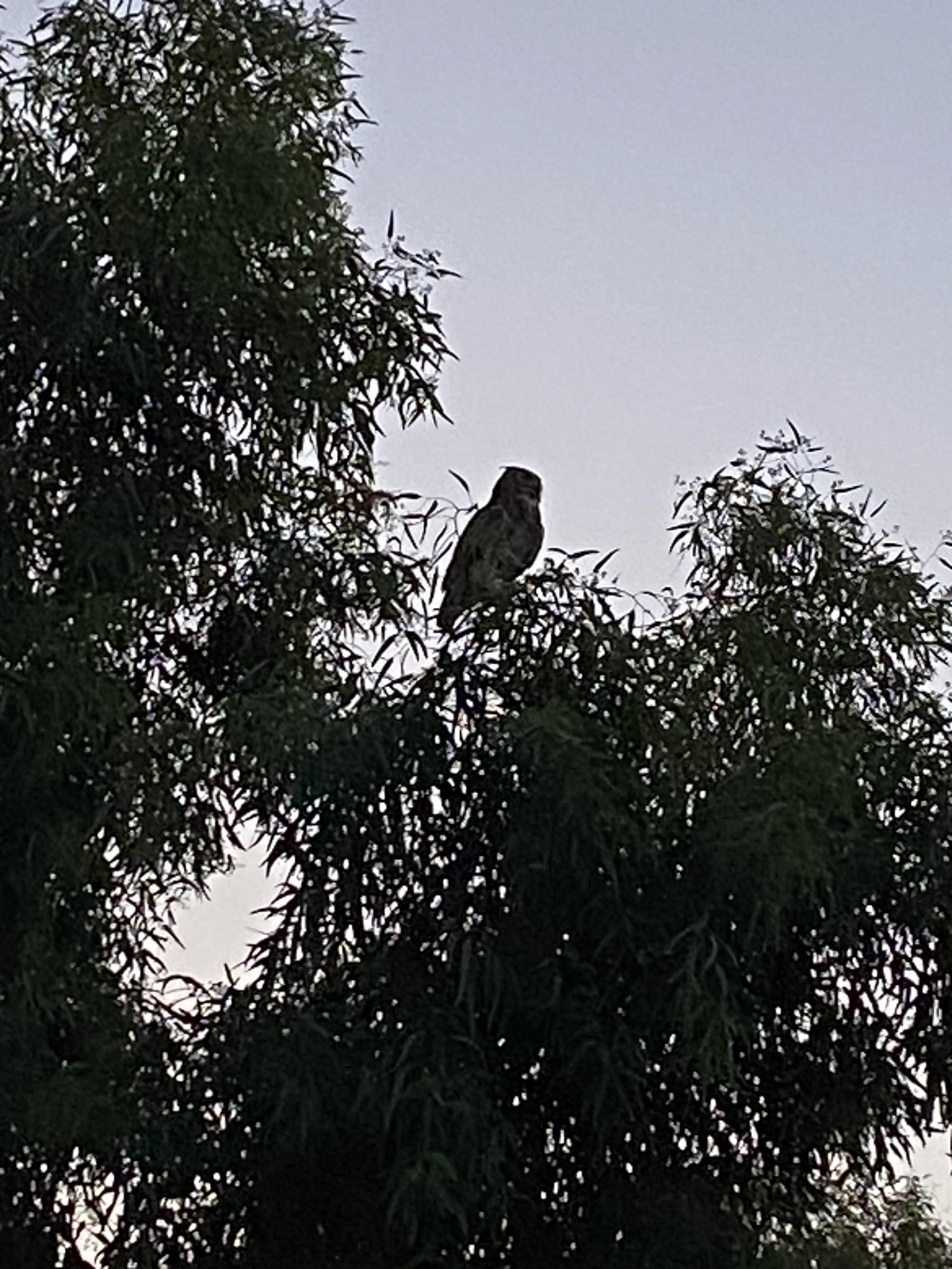 The story didn’t end there though, I went back to hit the hot tub. Saw my first Owl in the wild!!! Now this is a cool sync story… I didn’t bring my phone. I had gotten out of the hot tub and hustled over to try to get a closer look, but I forgot my phone. I was saying to the owl please wait for me to get back to get a picture and he did a little head nod. I turned to go back to get it and out came a couple people that worked at the park. I asked if I could use her phone to snap a couple and she let me. I went back, it could only zoom in 5x, but I got 3 pics 🙂 Turned to her to email them and owl flew over our heads and away he went. Perfect timing! When things work out like today, which happens pretty regularly for me, it’s really easy to see how magical our universe really is. And I have @Brian to thank for my start in learning to appreciate the beauty in everything, and remembering to always look up! 🙂