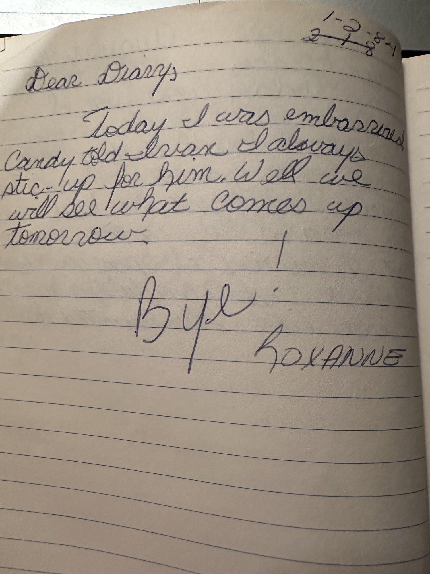 So both sisters were sneaking into my book! I really never did much snooping on them. But there was one time with Shannon. I had an urge to look for my deep purple nightie and couldn’t find it. It was my favorite one, bit of a satiny texture. It was in the middle of the afternoon and she was getting ready to leave to go home to her mothers. So I decided to check her bags and there it was. So I took it out and hid it but never said a thing. She left and when she came back the next weekend never mentioned it either. She was up to some shady stuff towards the end of us living at the Columbia Ave house. Never understood why. When we got to the farm in Jersey, her time with us dropped way down.