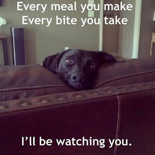 “Ha! That’s my dog.. waiting patiently for a single crumb to drop. We have any other dog owners around today?”